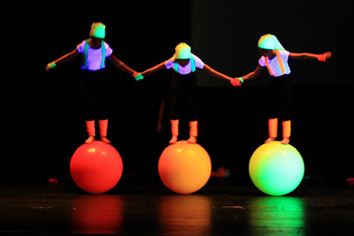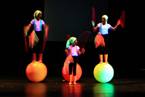 In den Gesichtern der Kinder spiegelt sich der Stolz die gelernten Kunststücke auf und mit der glatten Laufkugel zu zeigen. Die Zuschauer sind verblüfft.….